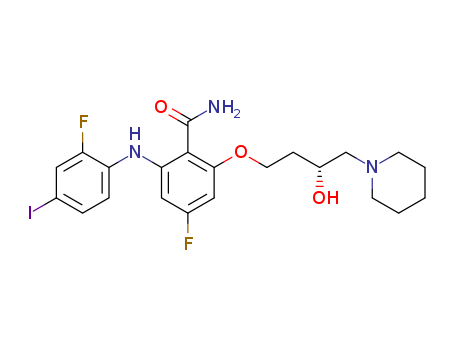 - Name: 4-fluoro-2-(2-fluoro-4-iodo-phenylamino)-6-((R)-3-hydroxy-4-piperidin-1-yl-butoxy)-benzamide