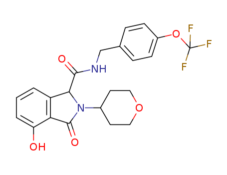 - Synonyms:4-hydroxy-3-oxo-2-(tetrahydro-2H-pyran4-yl)-N-(4-(trifluoromethoxy)benzyl)isoindoline-1-carboxamide