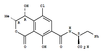 - Synonyms:L-Phenylalanine,N-[(5-chloro-3,4-dihydro-4,8-dihydroxy-3-methyl-1-oxo-1H-2-benzopyran-7-yl)carbonyl]-,(3R-cis)-; (4R)-4-Hydroxyochratoxin A; 4(R)-Hydroxyochratoxin A;4-Hydroxyochratoxin A