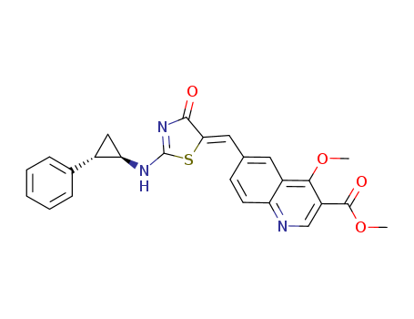 - Synonyms:4-methoxy-6-[4-oxo-2-((1R,2S)-2-phenyl-cyclopropylamino)-4H-thiazol-(5Z)-ylidenemethyl]-quinoline-3-carboxylic acid methyl ester