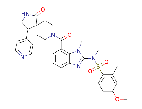 4-methoxy-N,2,6-trimethyl-N-[1-methyl-7-(4-oxo-1-pyridin-4-yl-3,8-diazaspiro[4.5]decane-8-carbonyl)-1H-benzoimidazol-2-yl]-benzenesulfonic acid amide(1258069-57-6)