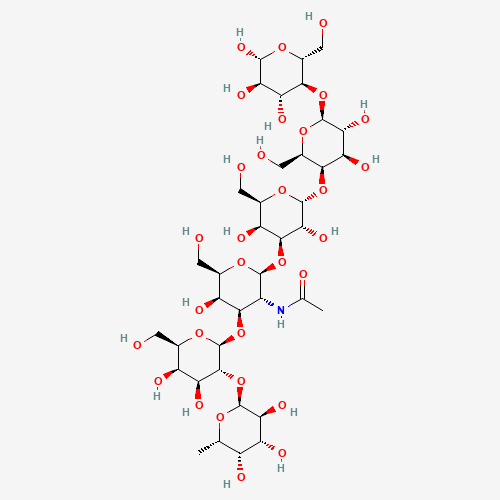- Synonyms:Globo H (hexassacharide);419CX257YZ;alpha-L-Fucp-(1->2)-beta-D-Galp-(1->3)-beta-D-GalpNAc-(1->3)-alpha-D-Galp-(1->4)-beta-D-Galp-(1->4)-beta-D-Glcp;alphaFuc(1-2)betaGal(1-3)betaGalNAc(1-3)alphaGal(1-4)betaGal(1-4)betaGlc;Fucalpha1-2Galbeta1-3GalNAcbeta1-3Galalpha1-4Galbeta1-4beta1-4Glcbeta;6-deoxy-alpha-L-galactopyranosyl-(1->2)-beta-D-galactopyranosyl-(1->3)-2-acetamido-2-deoxy-beta-D-galactopyranosyl-(1->3)-alpha-D-galactopyranosyl-(1->4)-beta-D-galactopyranosyl-(1->3)-beta-D-glucopyranose;alpha-L-Fuc-(1->2)-beta-D-Gal-(1->3)-beta-D-GalNAc-(1->3)-alpha-D-Gal-(1->4)-alpha-D-Gal-(1->4)-alpha-D-Glc;alpha-L-fucopyranosyl-(1->2)-beta-D-galactopyranosyl-(1->3)-2-acetamido-2-deoxy-beta-D-galactopyranosyl-(1->3)-alpha-D-galactopyranosyl-(1->4)-beta-D-galactopyranosyl-(1->4)-beta-D-glucopyranose;alpha-L-fucosyl-(1->2)-beta-D-galactosyl-(1->3)-N-acetyl-beta-D-galactosaminyl-(1->3)-alpha-D-galactosyl-(1->4)-beta-D-galactosyl-(1->4)-beta-D-glucose;alpha-L-Fucp-(1-2)-beta-D-Galp-(1-3)-beta-D-GalpNAc-(1-3)-alpha-D-Galp-(1-4)-beta-D-Galp-(1-4)-beta-D-Glcp;UNII-419CX257YZ;CHEBI:65245;Fuca1-2Galb1-3GalNAcb1-3Gala1-4Galb1-4Glcb;Q27133769;Globo H (fucalpha1 -> 2galbeta1 -> 3galnacbeta1 -> 3galalpha1 -> 4galbeta1 -> 4glc);.BETA.-D-GLUCOPYRANOSE, O-6-DEOXY-.ALPHA.-L-GALACTOPYRANOSYL-(1->2)-O-.BETA.-D-GALACTOPYRANOSYL-(1->3)-O-2-(ACETYLAMINO)-2-DEOXY-.BETA.-D-GALACTOPYRANOSYL-(1->3)-O-.ALPHA.-D-GALACTOPYRANOSYL-(1->4)-O-.BETA.-D-GALACTOPYRANOSYL-(1->4)-;109828-14-0;207384-96-1;beta-D-Glucopyranose, O-6-deoxy-alpha-L-galactopyranosyl-(1->2)-o-beta-D-galactopyranosyl-(1->3)-o-2-(acetylamino)-2-deoxy-beta-D-galactopyranosyl-(1->3)-o-alpha-D-galactopyranosyl-(1->4)-o-beta-D-galactopyranosyl-(1->4)-;D-GLUCOSE, O-6-DEOXY-.ALPHA.-L-GALACTOPYRANOSYL-(1->2)-O-.BETA.-D-GALACTOPYRANOSYL-(1->3)-O-2-(ACETYLAMINO)-2-DEOXY-.BETA.-D-GALACTOPYRANOSYL-(1->3)-O-.ALPHA.-D-GALACTOPYRANOSYL-(1->4)-O-.BETA.-D-GALACTOPYRANOSYL-(1->4)-;D-Glucose, O-6-deoxy-alpha-L-galactopyranosyl-(1->2)-o-beta-D-galactopyranosyl-(1->3)-o-2-(acetylamino)-2-deoxy-beta-D-galactopyranosyl-(1->3)-o-alpha-D-galactopyranosyl-(1->4)-o-beta-D-galactopyranosyl-(1->4)-;GLOBO H (FUC.ALPHA.1 -> 2GAL.BETA.1 -> 3GALNAC.BETA.1 -> 3GAL.ALPHA.1 -> 4GAL.BETA.1 -> 4GLC)