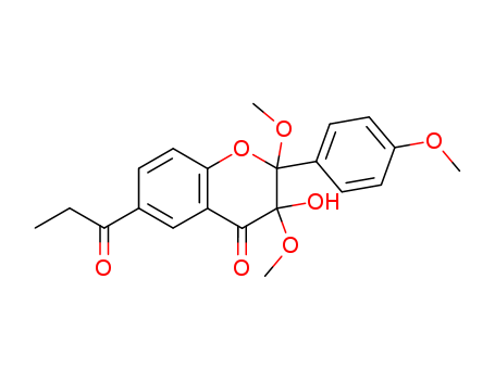 - 131136-66-8/4H-1-Benzopyran-4-one, 2,3-dihydro-3-hydroxy-2,3-dimethoxy-6-(1-oxopropyl)-2-phenyl-