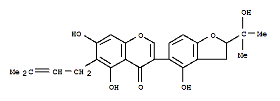 - Name: 4H-1-Benzopyran-4-one,3-[2,3-dihydro-4-hydroxy-2-(1-hydroxy-1-methylethyl)-5-benzofuranyl]-5,7-dihydroxy-6-(3-methyl-2-butenyl)-(9CI)