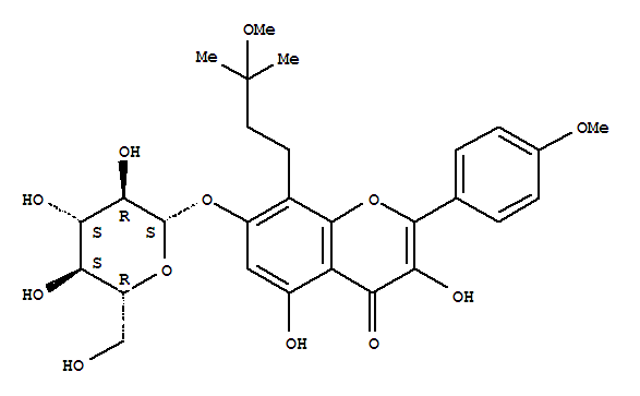 - Name: 4H-1-Benzopyran-4-one,7-(b-D-glucopyranosyloxy)-3,5-dihydroxy-8-(3-methoxy-3-methylbutyl)-2-(4-methoxyphenyl)-