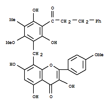 - Name: 4H-1-Benzopyran-4-one,8-[[2,4-dihydroxy-6-methoxy-5-methyl-3-(1-oxo-3-phenylpropyl)phenyl]methyl]-3,5,7-trihydroxy-2-(4-methoxyphenyl)-