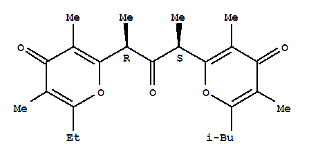 - Name: 4H-Pyran-4-one,2-[(1R,3S)-3-[3,5-dimethyl-6-(2-methylpropyl)-4-oxo-4H-pyran-2-yl]-1-methyl-2-oxobutyl]-6-ethyl-3,5-dimethyl-,rel-