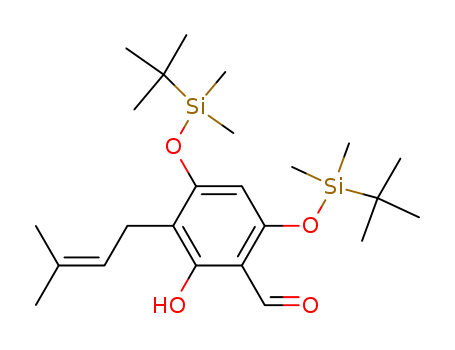 - Synonyms:4,6-bis-(tert-butyl-dimethyl-silanyloxy)-2-hydroxy-3-(3-methyl-but-2-enyl)-benzaldehyde