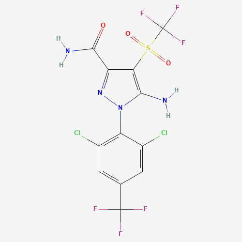 - Synonyms:5-Amino-1-(2,6-dichloro-4-trifluoromethylphenyl)-4-trifluoromethylsulfonyl-1H-pyrazole-3-carboxylic acid amide;SCHEMBL3826379;DTXSID401021542;RPA 105320;293752-45-1;NS00067397;5-Amino-1-(2,6-dichloro-4-(trifluoromethyl)phenyl)-4-((trifluoromethyl)sulfonyl)-1H-pyrazole-3-carboxamide;5-amino-3-carbamyl-1-(2,6-dichloro-4-trifluoromethylphenyl)-4-trifluoromethylsulfonylpyrazole