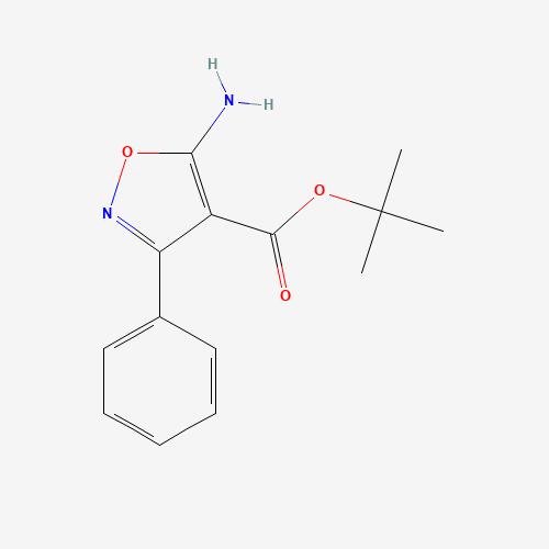 - Synonyms:5-AMINO-3-PHENYL-ISOXAZOLE-4-CARBOXYLIC ACID TERT-BUTYL ESTER;1263378-53-5;tert-butyl 5-amino-3-phenyl-1,2-oxazole-4-carboxylate;DTXSID801153147;MFCD18432569;SB32501;CS-0340702;5-Amino-3-phenyl-isoxazole-4-carboxylic acid t-butyl ester;5-AMINO-3-PHENYL-ISOXAZOLE-4-CARBOXYLICACIDTERT-BUTYLESTER;4-Isoxazolecarboxylic acid, 5-amino-3-phenyl-, 1,1-dimethylethyl ester