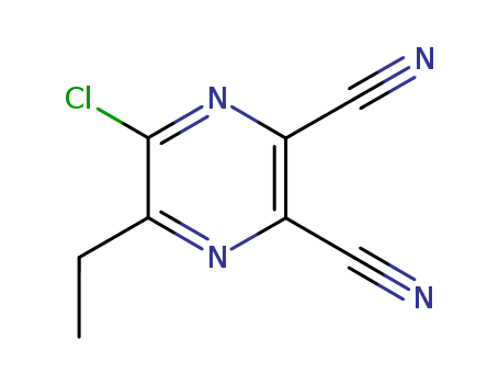 - Synonyms:2,3-Dicyano-5-chloro-6-ethylpyrazine;5-chloro-6-ethyl-pyrazine-2,3-dicarbonitrile;2,3-Pyrazinedicarbonitrile,5-chloro-6-ethyl;5-Chloro-6-ethyl-2,3-pyrazinedicarbonitrile;