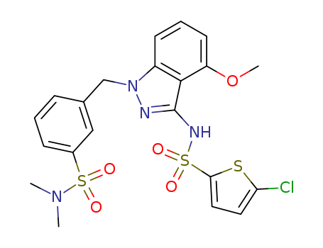 - Name: 5-Chloro-N-[1-({3-[(dimethylamino)sulfonyl]phenyl}methyl)-4-(methyloxy)-1H-indazol-3-yl]-2-thiophenesulfonamide