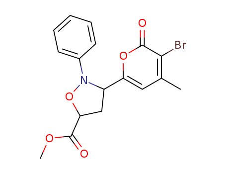 - Name: 5-Isoxazolidinecarboxylic acid, 3-(3-bromo-4-methyl-2-oxo-2H-pyran-6-yl)-2-phenyl-, methyl ester, trans-