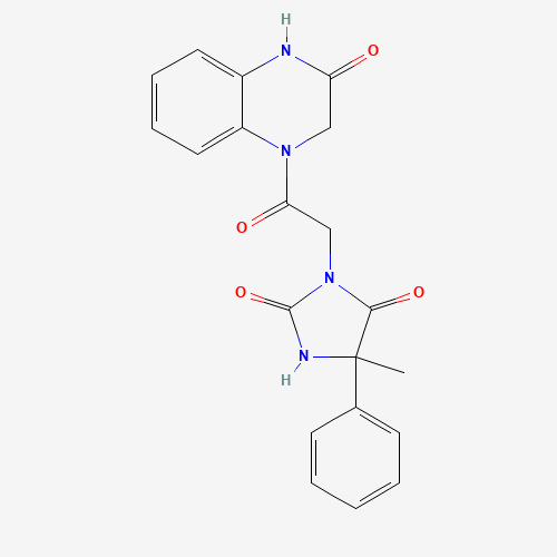 - Name: 5-Methyl-3-[2-oxo-2-(3-oxo-2,4-dihydroquinoxalin-1-yl)ethyl]-5-phenylimidazolidine-2,4-dione