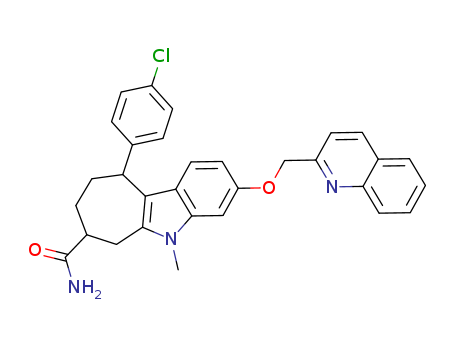 - Name: 5-Methyl-3-(quinolin-2-ylmethoxy)-10-p-chlorophenyl-5,6,7,8,9,10-hexahydrocyclohept[b]indole-7-carboxamide
