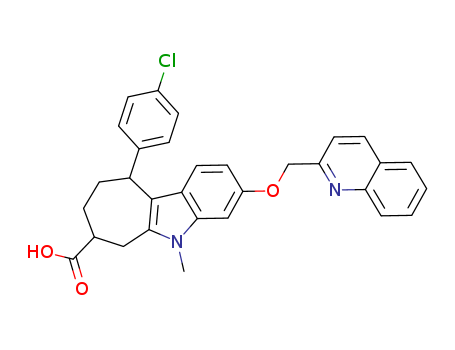5-Methyl-3-(quinolin-2-ylmethoxy)-10-p-chlorophenyl-5,6,7,8,9,10-hexahydrocyclohept[b]indole-7-carboxylic acid(141127-20-0)