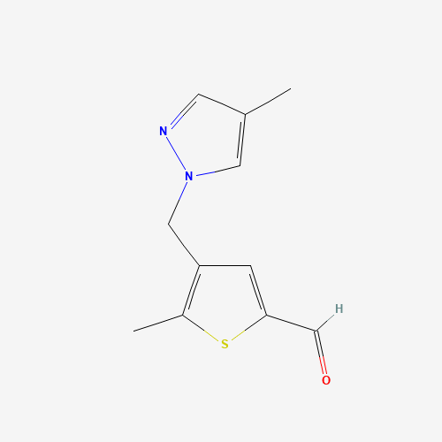 - Synonyms:1006448-73-2;5-Methyl-4-((4-methyl-1H-pyrazol-1-yl)methyl)thiophene-2-carbaldehyde;DTXSID501151673;5-Methyl-4-[(4-methyl-1H-pyrazol-1-yl)methyl]-2-thiophenecarboxaldehyde