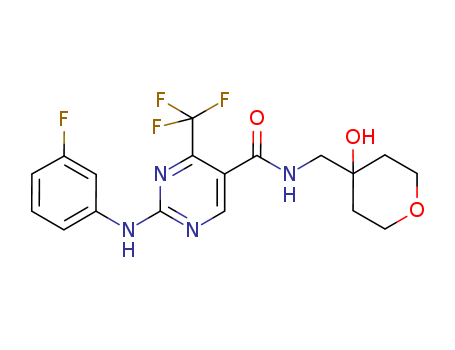 - 666261-75-2/5-Pyrimidinecarboxamide, 2-[(3-fluorophenyl)amino]-N-[(tetrahydro-4-hydroxy-2H-pyran-4-yl)methyl ]-4-(trifluoromethyl)-