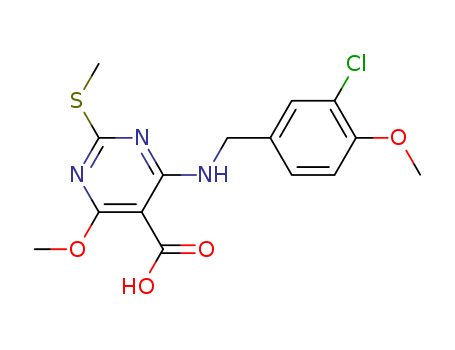 5-Pyrimidinecarboxylic acid, 4-[[(3-chloro-4-methoxyphenyl)methyl]amino]-6-methoxy-2-(methylthio)-(372118-44-0)
