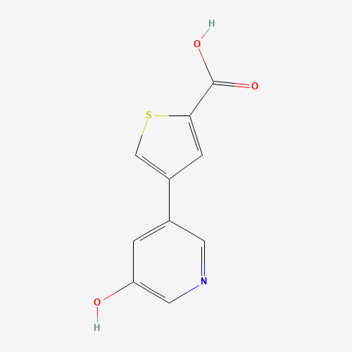 - Synonyms:893727-66-7;5-(2-CARBOXYTHIOPHENE-4-YL)-3-HYDROXYPYRIDINE;4-(5-hydroxypyridin-3-yl)thiophene-2-carboxylic acid;SCHEMBL26682346;DTXSID30596380;MFCD07440052;AKOS002666021;5-(2-Carboxythiophene-4-yl)-3-hydroxypyridine, 95%;4-(5-hydroxy-pyridin-3-yl)-thiophene-2-carboxylic acid