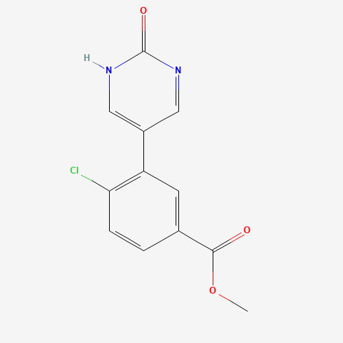 - Synonyms:1261924-00-8;5-(2-CHLORO-5-METHOXYCARBONYLPHENYL)-2-HYDROXYPYRIMIDINE;DTXSID10686874;MFCD18316658;Methyl 4-chloro-3-(2-hydroxypyrimidin-5-yl)benzoate;Methyl 4-chloro-3-(2-oxo-1,2-dihydropyrimidin-5-yl)benzoate