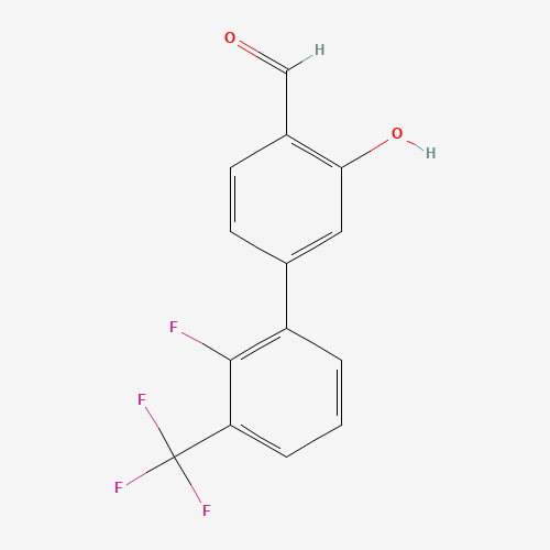 - Synonyms:5-(2-FLUORO-3-TRIFLUOROMETHYLPHENYL)-2-FORMYLPHENOL;1261898-68-3;DTXSID90685340;MFCD18314865;2'-Fluoro-3-hydroxy-3'-(trifluoromethyl)[1,1'-biphenyl]-4-carbaldehyde