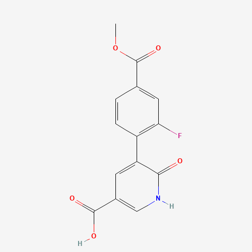 - Synonyms:1261946-33-1;5-(2-FLUORO-4-METHOXYCARBONYLPHENYL)-6-HYDROXYNICOTINIC ACID;DTXSID80688103;MFCD18318201;5-[2-Fluoro-4-(methoxycarbonyl)phenyl]-6-oxo-1,6-dihydropyridine-3-carboxylic acid
