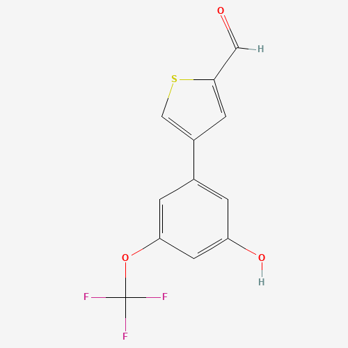 - Synonyms:1261952-26-4;5-(2-FORMYLTHIOPHEN-4-YL)-3-TRIFLUOROMETHOXYPHENOL;DTXSID40686569;4-[3-hydroxy-5-(trifluoromethoxy)phenyl]thiophene-2-carbaldehyde;MFCD18316258