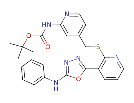 - Synonyms:5-(2-(2-t-butoxycarbonylaminopyridin-4-yl)methylthiopyridin-3-yl)-N-phenyl-1,3,4-oxadiazol-2-amine