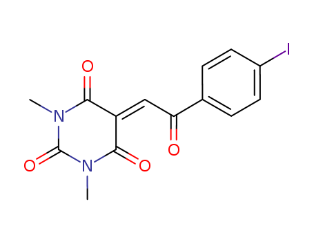 - Synonyms:5-(2-(4-iodophenyl)-2-oxoethylidene)-1,3-dimethylpyrimidine-2,4,6-trione