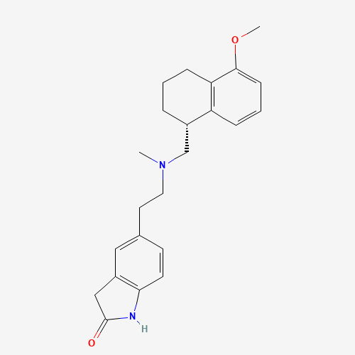 - Synonyms:CHEMBL9869;SCHEMBL5861390;DTXSID001108693;BDBM50057095;1,3-Dihydro-5-[2-[methyl[[(1R)-1,2,3,4-tetrahydro-5-methoxy-1-naphthalenyl]methyl]amino]ethyl]-2H-indol-2-one;152149-36-5;5-{2-[((R)-5-Methoxy-1,2,3,4-tetrahydro-naphthalen-1-ylmethyl)-methyl-amino]-ethyl}-1,3-dihydro-indol-2-one
