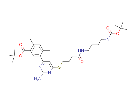 5-{2-amino-6-[3-(4-tert-butoxycarbonylaminobutylcarbamoyl)propylsulfanyl]pyrimidin-4-yl}-2, 4-dimethylbenzoic acid tert-butyl ester(1052647-60-5)