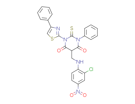 5-{[(2-chloro-4-nitrophenyl)amino]methyl}-1-phenyl-3-(4-phenyl-1,3-thiazol-2-yl)-2-thioxodihydropyrimidine-4,6(1H,5H)-dione(139356-73-3)