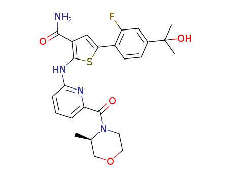 5-[2-fluoro-4-(1-hydroxy-1-methylethyl)phenyl]-2-((6-((3R)-3-methylmorpholin-4-ylcarbonyl)pyridin-2-yl)amino)thiophene-3-carboxamide(1093874-83-9)
