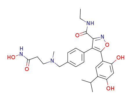 - Name: 5-(2,4-dihydroxy-5-isopropylphenyl)-N-ethyl-4-(4-(((3-(hydroxyl-amino)-3-oxopropyl)(methyl)amino)methyl)phenyl)isoxazole-3-carboxamide