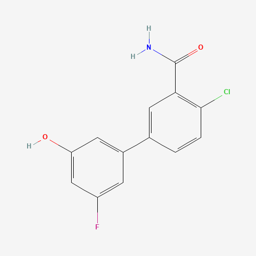 - Synonyms:1261918-53-9;5-(3-CARBAMOYL-4-CHLOROPHENYL)-3-FLUOROPHENOL;DTXSID30684493;MFCD18313992;4-Chloro-3'-fluoro-5'-hydroxy[1,1'-biphenyl]-3-carboxamide