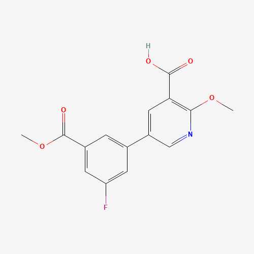 - Synonyms:1261953-25-6;5-(3-FLUORO-5-METHOXYCARBONYLPHENYL)-2-METHOXYNICOTINIC ACID;DTXSID80688143;MFCD18318253;5-[3-Fluoro-5-(methoxycarbonyl)phenyl]-2-methoxypyridine-3-carboxylic acid