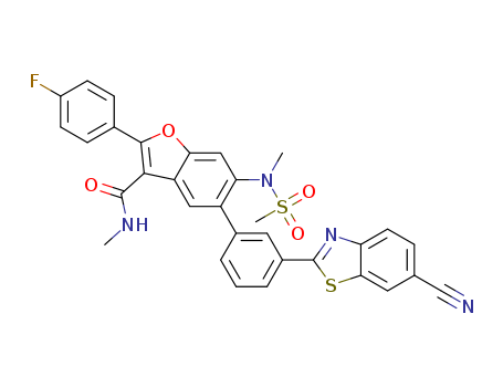 - Synonyms:5-(3-(6-cyanobenzo[d]thiazol-2-yl)phenyl)-2-(4-fluorophenyl)-N-methyl-6-(N-methylmethylsulfonamido)benzofuran-3-carboxamide