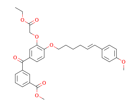 - Synonyms:5-(3-methoxycarbonyl-benzoyl)-2-[6-(4-methoxyphenyl)-(5E)-5-hexenyloxy]-phenoxy acetic acid ethyl ester