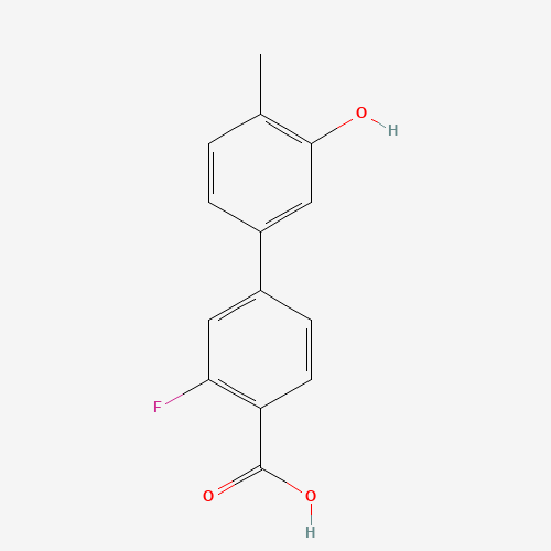 - Synonyms:1261995-84-9;5-(4-CARBOXY-3-FLUOROPHENYL)-2-METHYLPHENOL;DTXSID30683921;MFCD18313350;3-Fluoro-3'-hydroxy-4'-methyl[1,1'-biphenyl]-4-carboxylic acid