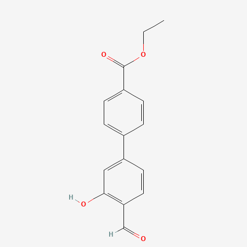 - Synonyms:1261930-59-9;5-(4-ETHOXYCARBONYLPHENYL)-2-FORMYLPHENOL;DTXSID40685299;MFCD18314832;Ethyl 4'-formyl-3'-hydroxy[1,1'-biphenyl]-4-carboxylate