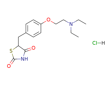 - Synonyms:5-[4-(2-Diethylamino-ethoxy)-benzyl]-thiazolidine-2,4-dione; hydrochloride