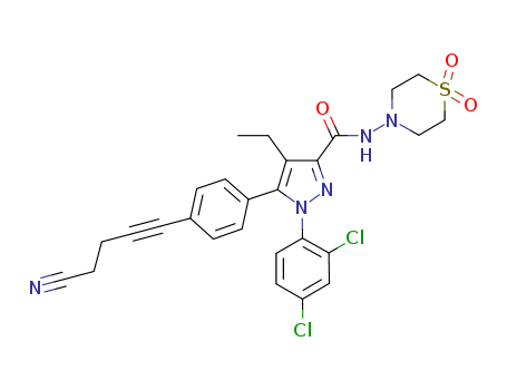 - Name: 5-(4-(4-cyanobut-1-ynyl)phenyl)-1-(2,4-dichlorophenyl)-4-ethyl-N-(1,1-dioxothiomorpholino)-1H-pyrazole-3-carboxamide