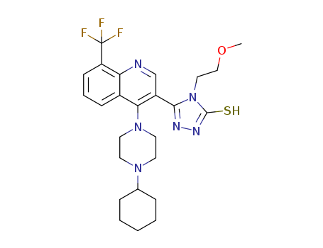 - Synonyms:5-(4-(4-cyclohexylpiperazin-1-yl)-8-(trifluoromethyl)quinolin-3-yl)-4-(2-methoxy ethyl)-4H-1,2,4-triazole-3-thiol