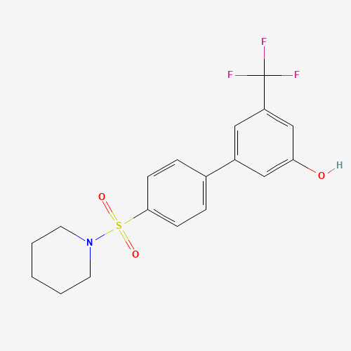 - Synonyms:1261965-22-3;5-[4-(PIPERIDIN-1-YLSULFONYL)PHENYL]-3-TRIFLUOROMETHYLPHENOL;3-(4-piperidin-1-ylsulfonylphenyl)-5-(trifluoromethyl)phenol;DTXSID70686774;MFCD18316491;BS-30523;4'-(Piperidine-1-sulfonyl)-5-(trifluoromethyl)[1,1'-biphenyl]-3-ol