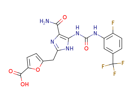 - Name: 5-{4-carbamoyl-5-[3-(2-fluoro-5-trifluoromethyl-phenyl)ureido]-1H-imidazol-2-ylmethyl}furan-2-carboxylic acid