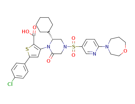 5-(4-chlorophenyl)-3-[(R)-2-cyclohexyl-4-(6-[1,4]oxazepan-4-ylpyridine-3-sulfonyl)-6-oxopiperazin-1-yl]thiophene-2-carboxylic acid(1356455-38-3)