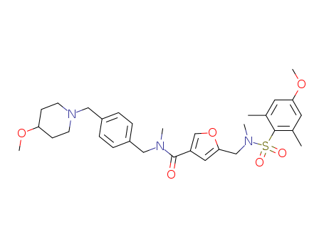 - Name: 5-({[(4-methoxy-2,6-dimethylphenyl)sulfonyl](methyl)amino}methyl)-N-{4-[(4-methoxypiperidin-1-yl)methyl]benzyl}-N-methylfuran-3-carboxamide