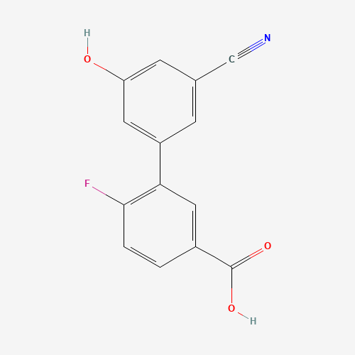 - Synonyms:1261998-99-5;5-(5-CARBOXY-2-FLUOROPHENYL)-3-CYANOPHENOL;DTXSID50684874;MFCD18314425;3'-Cyano-6-fluoro-5'-hydroxy[1,1'-biphenyl]-3-carboxylic acid