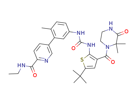 - Name: 5-(5-(3-(5-tert-butyl-3-(2,2-dimethyl-3-oxopiperazine-1-carbonyl)thiophen-2-yl)ureido)-2-methylphenyl)-N-ethylpyridine-2-carboxamide